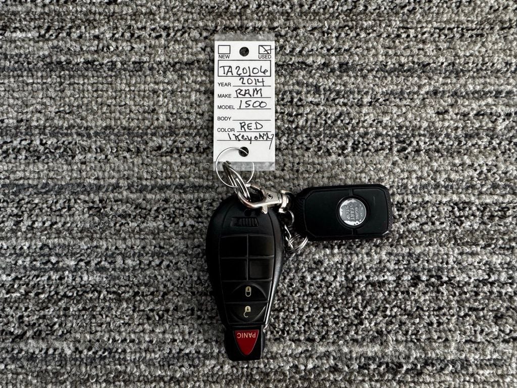 2014 Flame Red Clearcoat Ram 1500 Sport This Ram 1500 has many features and is well equipped including, Local Trade, New Tires, New Battery, 4WD, New Front Brake Pads/Rotors, ABS brakes, Automatic temperature control, Class IV Receiver Hitch, Dual front impact airbags, Heated front seats, Low tire pressure warning, Power driver seat, Power Lumbar Adjust, Power steering, Power windows, Radio: Uconnect 8.4A AM/FM/SXM/BT, Remote keyless entry, Steering wheel mounted audio controls, Tilt steering wheel, Traction control, Trailer Brake Control, Trip computer.