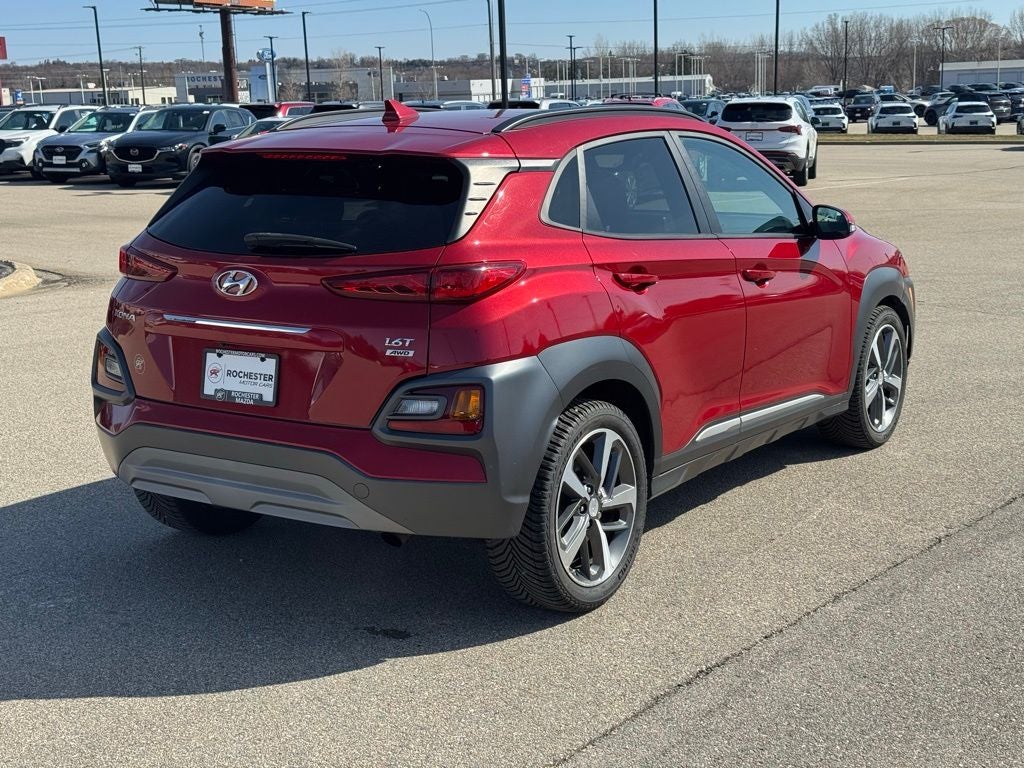 Recent Arrival! Kona Limited Pulse Red Odometer is 9632 miles below market average! CARFAX One-Owner. Collision Warning System, Blind-Spot Monitors, Touchscreen Controls, Backup Camera, Apple CarPlay, Android Auto, Voice Recognition, Bluetooth® Hands-Free, AWD, 4WD, Leather, Sunroof/Moonroof, Portable Audio Connection, Sirius Radio, Smart Key, 3.611 Axle Ratio, 4-Wheel Disc Brakes, 8 Speakers, 8-Way Power Driver Seat, ABS brakes, Air Conditioning, AM/FM radio: SiriusXM, Apple CarPlay & Android Auto, Auto-dimming Rear-View mirror, Automatic temperature control, Brake assist, Cargo Net, Cargo Package, Cargo Tray, Delay-off headlights, Electronic Stability Control, Four wheel independent suspension, Front fog lights, Fully automatic headlights, Heated door mirrors, Heated Front Bucket Seats, Heated front seats, Option Group 01, Power driver seat, Power moonroof, Power steering, Power windows, Radio: AM/FM/HD Radio/SiriusXM Audio System, Rear window defroster, Remote keyless entry, Speed-sensing steering, Steering wheel mounted audio controls, Traction control. Free CARFAX Vehicle History Report, please call and request! 26/29 City/Highway MPG