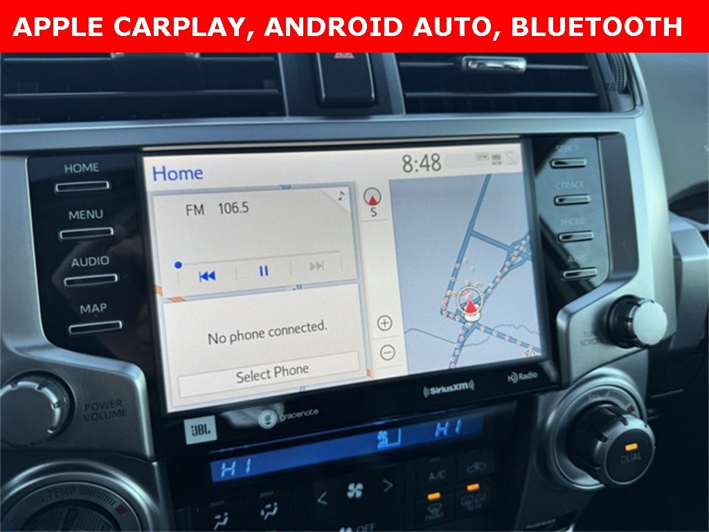 Built to handle demanding terrain while surrounding you in upscale comfort, this Certified 2023 Toyota 4Runner Limited 4WD in Classic Silver Metallic offers a refined take on legendary body-on-frame capability. CARFAX One-Owner and Clean CARFAX, it features advanced safety technologies such as a Collision Warning System, Adaptive Cruise Control, Lane Departure Warning, Blind-Spot Monitors, Rear Parking Sensors, and a Panoramic Back Monitor for added confidence. Inside, the Limited Package provides leather-trimmed seating, heated and ventilated front seats, memory driver seat, and dual-zone automatic climate control, creating a premium driving environment. Stay connected with a touchscreen infotainment system with Navigation, Apple CarPlay, Android Auto, Bluetooth® Hands-Free, Voice Recognition, SiriusXM, and a JBL Premium Audio system with 15 speakers. Additional highlights include a power moonroof, 4WD capability, 20-inch unique alloy wheels, silver roof rails, Smart keyless entry with push-button start, HomeLink garage door opener, and Safety Connect with 1-year trial, making this 2023 Toyota 4Runner Limited 4WD a well-rounded blend of capability, comfort, and modern technology.