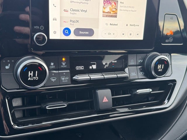 Certified and ready to elevate every drive, this 2023 Toyota Highlander XLE AWD in Midnight Black Metallic delivers a perfect blend of comfort, capability, and advanced technology, backed by a CARFAX One-Owner and Clean CARFAX history. Powered with confidence-inspiring all-wheel drive, this Highlander features leather-trimmed SofTex seating with heated front bucket seats, a power moonroof, and versatile 3rd-row split-bench seating to accommodate passengers and cargo with ease. The XLE Package enhances everyday convenience with a power liftgate, keyless access with push-button start, HomeLink garage door transmitter, and an intuitive 8-inch Toyota Audio Multimedia touchscreen with Apple CarPlay, Android Auto, SiriusXM, Bluetooth® hands-free connectivity, and portable audio connection. Stay protected with Toyota Safety Sense technologies including Collision Warning System, Adaptive Cruise Control, Lane Keeping Assist, Lane Departure Warning, Blind-Spot Monitors, Auto High-Beam headlights, backup camera, and Safety Connect. Additional highlights include multi-zone automatic climate control with rear air conditioning, 18-inch machined-finish alloy wheels, alloy wheels, front fog lights, heated power mirrors, power driver and passenger seats, 4-wheel disc brakes, and steering wheel-mounted audio controls. Combining family-friendly versatility with refined styling and impressive efficiency at an estimated 21/28 city/highway MPG, this 2023 Toyota Highlander XLE AWD is an outstanding choice for drivers seeking a well-equipped midsize SUV.