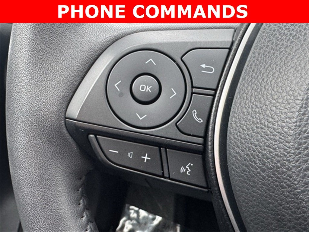 Certified and well equipped, this 2023 Toyota RAV4 Hybrid XLE Premium AWD blends impressive efficiency with refined comfort and advanced technology in a versatile all-wheel-drive SUV. It delivers an outstanding 41/38 city/highway MPG and features leather-trimmed SofTex seating, heated front seats, a heated leather steering wheel, driver seat memory, dual-zone automatic climate control, and a power liftgate. The touchscreen infotainment system includes Apple CarPlay, Android Auto, Bluetooth® hands-free connectivity, SiriusXM, Qi-compatible wireless smartphone charging, Smart Key with push-button start, and Safety Connect. Confidence comes standard with Collision Warning System, Adaptive Cruise Control, Lane Keeping Assist, Blind Spot Monitor, Lane Departure Warning, Intelligent Clearance Sonar with Front & Rear Parking Assist and Automated Braking, backup camera, and auto high-beam headlights. Enhanced by the XLE Premium Package, Weather Package, and Advanced Technology Package, plus 18-inch sport alloy wheels and a tilt/slide moonroof, this Midnight Black Metallic RAV4 Hybrid XLE Premium AWD with a Clean CARFAX is a smart choice for drivers seeking efficiency, comfort, and capability.
