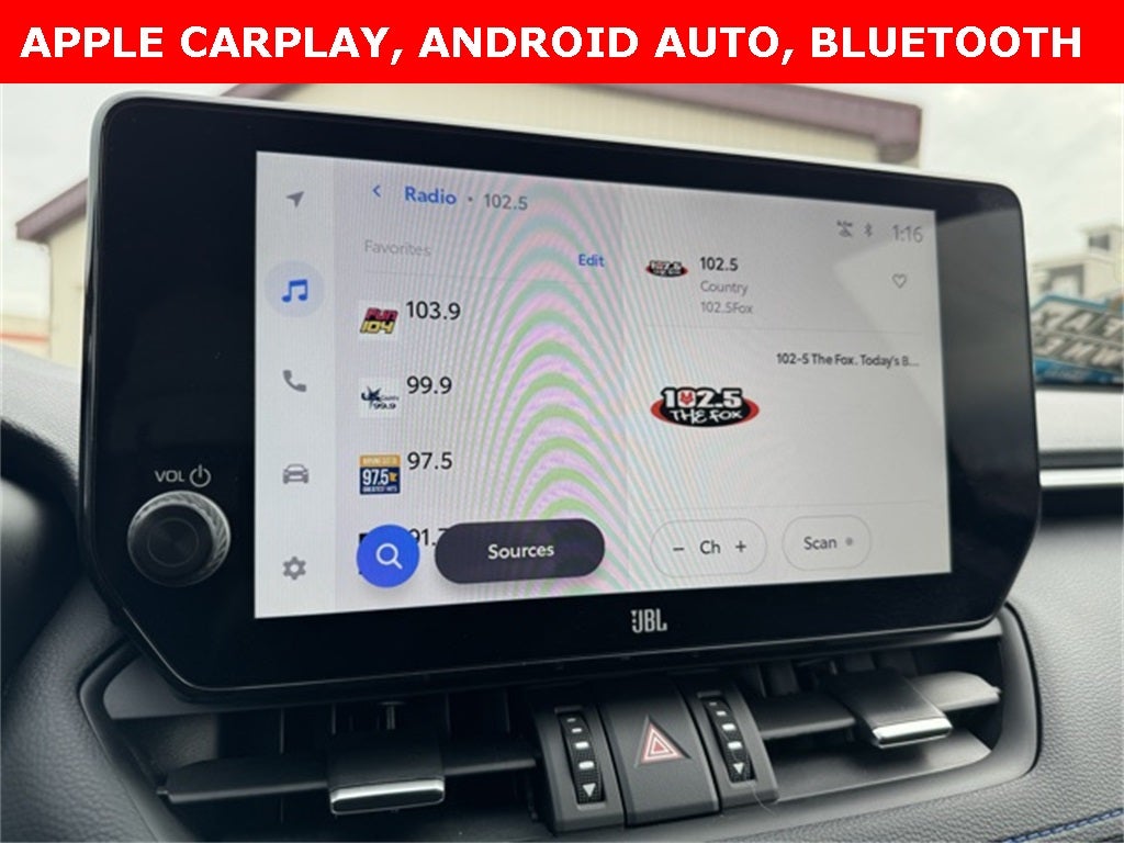 Turn heads and elevate every drive in this CARFAX One-Owner 2024 Toyota RAV4 Hybrid XSE AWD, finished in striking Silver Sky Metallic with a Midnight Black Metallic roof and engineered to deliver confident all-wheel-drive capability with impressive efficiency. This well-equipped RAV4 Hybrid XSE features a bold sport design with 18 black-painted aluminum alloy wheels, power moonroof, and power liftgate, while the upscale Mixed Media seat trim, heated front seats, and heated 3-spoke leather steering wheel create a refined cabin experience. Stay connected through the intuitive touchscreen display with Apple CarPlay, Android Auto, Bluetooth® hands-free connectivity, SiriusXM, Qi-compatible wireless smartphone charging, and a 12.3 multi-information display. Advanced safety and driver-assist technologies include a Collision Warning System, Adaptive Cruise Control, Lane Keeping Assist, Blind Spot Monitor, Front & Rear Parking Assist with Automated Braking, Intelligent Clearance Sonar, Panoramic View Monitor, backup camera, and Safety Connect with 1-year trial. Additional highlights include the Advanced Technology Package, Weather Package, Smart Key System with push-button start, driver seat with 2-position memory, dual-zone automatic climate control, HomeLink garage door transmitter, 4-wheel disc brakes, alloy wheels, and a premium AM/FM/XM audio system. Combining sporty styling, advanced technology, and outstanding hybrid performance, this 2024 Toyota RAV4 Hybrid XSE AWD is an exceptional choice for drivers seeking versatility, comfort, and modern innovation.