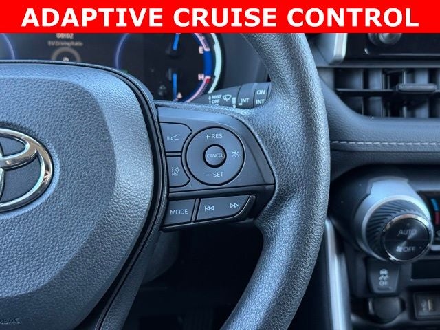 Efficiency meets everyday versatility in this 2025 Toyota RAV4 Hybrid XLE AWD, finished in Magnetic Gray Metallic and designed to deliver an impressive 41/38 city/highway MPG while providing confident all-wheel drive capability. This well-equipped SUV features the XLE Package with advanced safety technologies including a Collision Warning System, Adaptive Cruise Control, Blind-Spot Monitors, and Lane Keeping Assist, along with a backup camera and Toyota Safety Connect with a 1-year trial for added peace of mind. Inside, enjoy a comfortable and connected cabin with multizone climate control, front dual-zone A/C, a power driver seat, and a user-friendly AM/FM/XM audio system with touchscreen controls, Apple CarPlay, Android Auto, Bluetooth® hands-free connectivity, and SiriusXM capability. Additional highlights include alloy wheels, heated door mirrors, fully automatic headlights with auto high beams, remote keyless entry, steering wheel-mounted audio controls, and a full suite of stability and traction systems. This CARFAX One-Owner, Clean CARFAX 2025 Toyota RAV4 Hybrid XLE AWD is a smart choice for drivers seeking reliability, fuel efficiency, and modern technology in a versatile SUV.