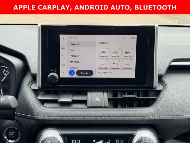 Certified and recently arrived, this 2025 Toyota RAV4 XLE AWD in Silver Sky Metallic is a CARFAX One-Owner with a Clean CARFAX, offering the perfect blend of efficiency, capability, and modern technology with an impressive 27/33 City/Highway MPG. Equipped with the sought-after XLE Package and AWD capability, this RAV4 delivers confidence on any road with advanced safety features including Collision Warning System, Adaptive Cruise Control, Blind-Spot Monitors, and Lane Keeping Assist, along with Toyota Safety Connect featuring a 10-year trial emergency communication system. Inside, enjoy a comfortable and connected cabin with touchscreen controls, Apple CarPlay, Android Auto, Bluetooth® hands-free connectivity, SiriusXM radio, and a premium AM/FM/XM Audio System with 6 speakers and steering wheel-mounted controls. Convenience is enhanced with dual-zone automatic climate control, a power driver seat, remote keyless entry, and a backup camera with Exterior Parking Camera Rear. Additional highlights include stylish 17 5-Spoke Silver Alloy wheels, heated door mirrors, fully automatic headlights with auto high beams, and a full suite of safety systems like ABS brakes, electronic stability control, traction control, and brake assist - making this 2025 Toyota RAV4 XLE AWD a well-rounded, reliable SUV ready for your daily drive.