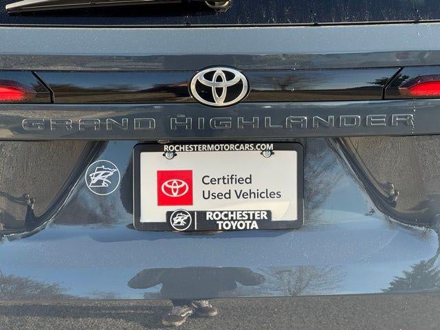 Experience refined comfort and capability in this Certified 2026 Toyota Grand Highlander XLE AWD, finished in striking Storm Cloud and delivering an efficient 21/27 City/Highway MPG. Designed for modern families, this versatile SUV features a spacious interior with a 3rd row split-bench seat, 60/40 rear bench seating, premium SofTex seat trim, heated front seats, and a power tilt/slide panoramic roof with power sunshade. Stay confidently connected with a 12.3 Toyota Multimedia Audio system, Apple CarPlay, Android Auto, Bluetooth® hands-free capability, SiriusXM radio, and Drive Connect Cloud Navigation (1-year trial subscription). Advanced safety comes standard with a Collision Warning System, Adaptive Cruise Control, Blind-Spot Monitors, Lane Keeping Assist, Lane Departure Warning, and an Emergency Communication System with Safety Connect (up to 10-year trial subscription). Convenience is key with a power liftgate, remote keyless entry, garage door transmitter (HomeLink), multizone climate control, and a backup camera with exterior parking support. Riding on stylish 18 multi-spoke aluminum silver wheels and equipped with AWD capability, this Grand Highlander delivers confident performance in any condition. With a Clean CARFAX and one-owner history, this well-equipped XLE is the perfect blend of comfort, technology, and reliability.